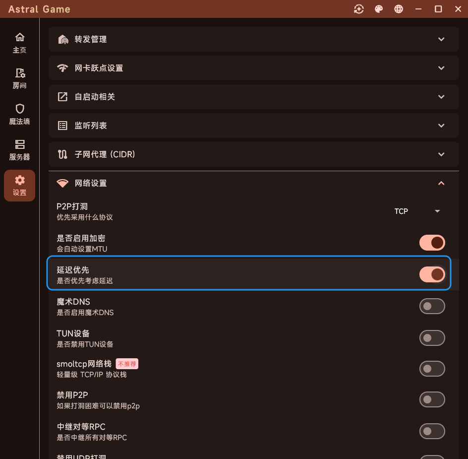 [flags]enable_kcp_proxy = trueenable_quic_proxy = truelatency_first = true4. Astral Game
