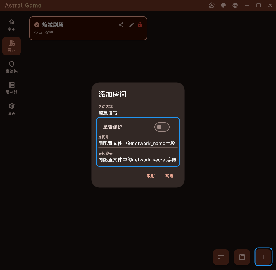 是否保护,并填写配置信息,如果你开Easytier中启用了私人模式,则内容应与配置信息相对应)