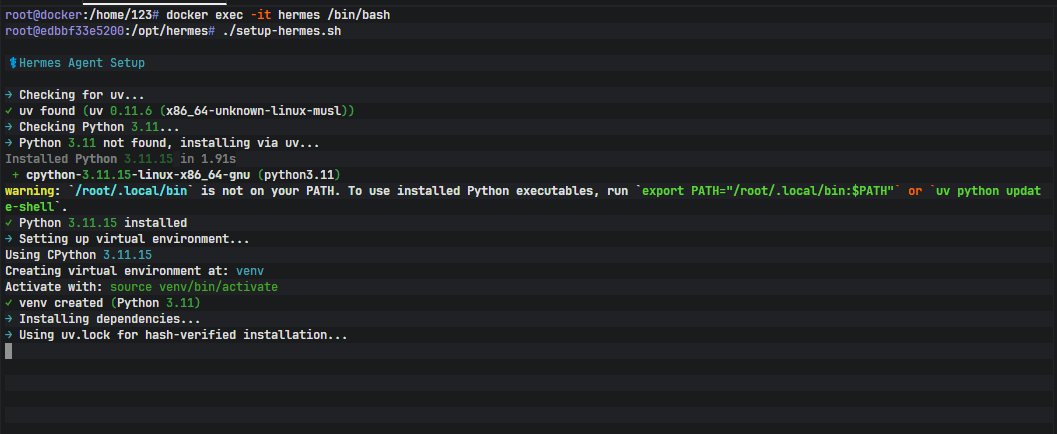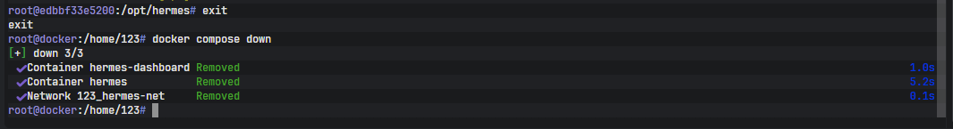 networks: hermes-net: driver: bridge输入 docker compose up -d 运行容器