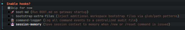 如果你想使用 QQ-Bot(非开放平台),可以在出现 Select channel (QuickStart) 时选择 Skip for now,等 快速设置 结束之后再配置